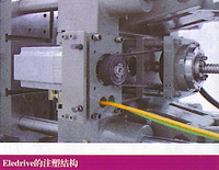 电动机采用对流冷却。该系统采用无水运行,因此,符合全电动压机的设计理念,即不采用任何液压油及任何流体。这样,虽然初期投资较高,但是,由于不采用水管,不存在水管堵塞和破裂现象,冈此,可大幅度降低维护成本。带有滚珠轴承螺杆的所有主轴均通过锯齿皮带与电动机连接,可确保适应性和可靠性,也不需要维护。制造商认为,采用锯齿皮带符合最佳电动化理念,其原因在于:如果采用齿轮箱,则需要采用油料和液体冷却系统以散发高温齿轮摩擦产生的热量。注射装置配备两台电动机,一台用于塑化,另一台用于注射。该机采用了一套荷载传感器,旨在对注射压力进行准确监控。据估计,这一方式对于反压值监控、使之在塑化过程中保持定十分理想。注嘴的进入力一直由伺服电动机控制,可始终保持一致。同时,该机不采用任何弹簧,因为弹簧属易损件,会影响工艺重复性。