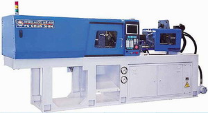 本机种为新型油电复合式(Hybrid)高速精密射出成型机,为了达成持续高速且精密射出的目的,本机型锁模单元采用全新高刚性结构及德国MOOG高应答伺服阀之全闭回路油压控制系统。本机型并具备多段射出压缩功能,射出压缩动作可分成五段,独立控制各段位置及速度,并且可与射出动作搭配压缩起点与终点,可适应多种不同之射压模具之需求,并运用於大面积薄件产品之低压成型。