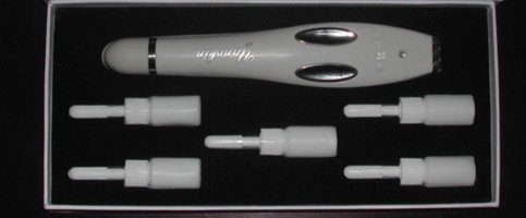 2、清洁面部皮肤后,先用湿毛巾热敷整个面部3-5分钟,取伊能净生物祛皱抑黑素适量均匀涂于眼角、嘴角、皱纹较多处,也可整脸涂抹。用食指、中指轻触笔前端感应窗,沿皱纹方向每间隔0.5-1CM停留15-20秒,反复3-5次即可。如面部有色斑,可在色斑处重点涂抹,用笔尖在该处反复打圈按摩5分钟左右,但不要过度用力,每天一次,如果要做二次,每次间隔需8小时以上,因过多、过快补充营养成份,也会对皮肤不利。整个过程完后,用柔肤水拍入面部皮肤。
