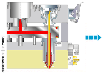 YUDO provide plate assemblies (MODU System) which are fully assembled, wired and thermally tested before shipment. This option provides a faster and more convenient method of installing the YUDO Hot Runner Systems. The MODU System eliminates any problems associated with wiring and Hot Runner assembly. It can also help to reduce mold-manufacturing time.