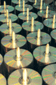 光盘又称为光存储器。其母盘是由耐高温的高强度聚碳酸酯为材料,用镜面精度在20~30纳米的超精密模具在超精密注塑机上加工制造出来的。在母盘上,分布有无数信号记录凹槽,这些凹槽都是模具在注塑机强大的合模力作用下压制出来的,凹槽根据盘片格式的不同也有所不同,其中CD、VCD信号记录凹槽宽度为0.56微米,深度为0.11微米,行距为1.5微米;DVD的信号记录凹槽宽度为0.28微米,深度为0.11微米,行距为0.75微米。在CDR(一次性刻录只读光盘)的预制凹槽上涂上有机塑料,经过刻录激光头激光信号的烧蚀,便将信号永久保留在光盘上了,经读取则可拾取信号。CDRW(可多次擦写刻录光盘)的信号凹槽相对较浅只有40~50纳米,里面喷镀沉积有记忆合金Ag、In、Sb、Te等,利用合金在晶态与无定型态对激光的反射率的差别,来擦写记录和读取信号。
