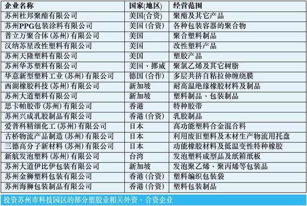 相关产业的发展,吸引了大量配套产业的发展。随着塑料零件在电子/汽车等领域的应用不断增多,苏州市同样成为世界塑胶业巨头投资的中心。其中包括与塑胶行业投资企业如德国巴斯夫公司 BASF、皇家壳牌集团 (荷兰) Royal Duch / Shell Group、日本富士通 Fujitsu Group, Japan、日本住友株式会社 Sumitomo Corporation, Japan、日本旭化成株式会社 Asahi kasei corporation、三井物产株式会社 Mitsui、日本三菱株式会社、美国德尔福 Delphi、美国杜邦公司 Duphon、英国 BP 公司等世界500强巨头。