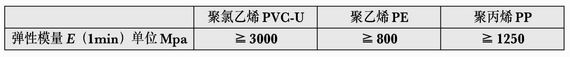 应用于埋地排水管的热塑性塑料有聚氯乙烯、聚乙烯和聚丙烯三大种类。三种材料的弹性模量E(根据prEN13476-1)分别为: