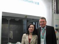 必诺机械(东莞)有限公司总经理吕惠卿(左)和必诺劳舍有限责任公司销售总监罗尔夫。 |