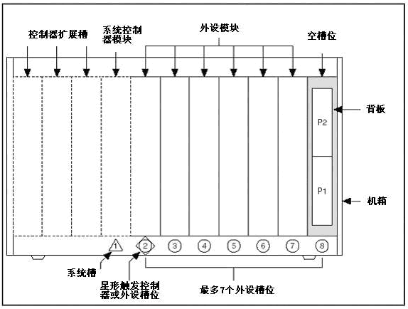 PXI是一个模块化的平台。系统的物理主机是一个拥有2至31个槽位的机箱,有的机箱还带有内置的显示器和键盘。机箱的第一槽(Slot 1)是控制器槽。目前可以使用的控制器有很多,最常见的两种是嵌入式控制器和MXI-3总线桥。嵌入式控制器是专为PXI机箱空间设计的常规计算机。MXI-3则是一种通过台式计算机控制PXI机箱的扩展器,这会在后面的内容中详细描述。机箱中的其它槽位被称为外部设备槽,用于插置功能模块,就像计算机里的PCI槽一样。