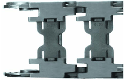 在世界各地,有1000多套采用传统滚轮拖链的系统被长期使用。工业领域(尤其是起重机械制造业)对长行程、内部负载和行驶速度提出了越来越高的要求。易格斯又推出了新型拖链P4系列,这是一种面向上述应用的侧边滚轮拖链。滚轮从中心被分成两片,从而确保在一个水平面上滚动。此外,拖链链节的节距长度在有无滚轮的情况下都相同,使得拖链的径向运动极为平稳,完全不受振动的影响。滚轮被牢固地安装在拖链的侧面。