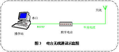 数字电台接在操作站的RS232口上,作用是用无线电波代替RS232的物理线路,延伸通讯距离,而且不受地形等的限制。