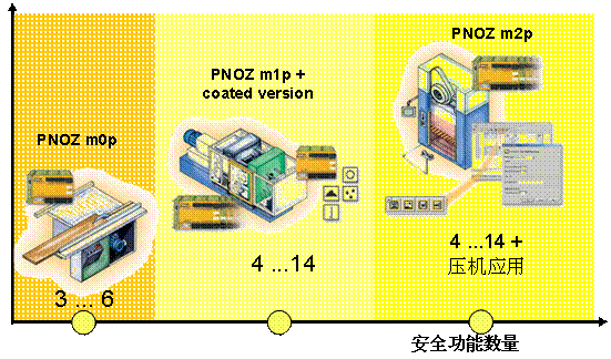 PNOZmulti可以控制普通标准功能。通过PNOZmi2p和PNOZmc1p,可以控制普通标准功能,诸如起动按钮、复位按钮,或进行状态信号输出;可以通过普通标准总线,如Profibus、DeviceNet、CANopen、CC-Link进行非安全状态信息的通讯。