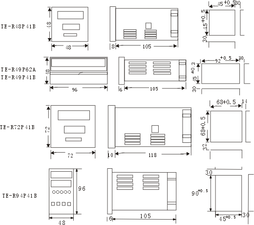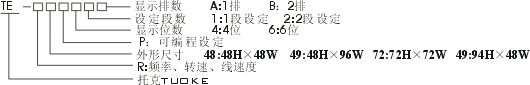 | 1、TE-R48P41B、TE-R72P41B(单设定双数显频率转速表)使用说明: |