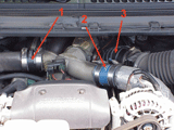 在左图中,软管1是涡轮增压器(TC)的“低温侧”;软管2是TC的“高温侧”,采用VMQ外层,FVMQ衬里;软管3则是导入冷空气的真空软管(从面罩进入歧管)。