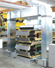 连续式生产线将为空调系统制造夹芯绝缘板。层压机被设计有层压板加工时的最精密公差,目的是实现厚度各异的板条(10-50 mm),并确保最佳的平行度和厚度公差。基本上,所允许的最大生产速度是10米/分钟,但它与所用厚度有着非常大的关联,事实上酚醛树脂的常见特色是极长的固化时间。而板条宽度将是1200毫米。
