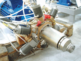 一旦完成了发泡,铝膜面和酚醛夹芯就进入到所谓“双带传送机”(21米长)中,实现有关的聚合阶段。如前所述,Cannon公司已经为双带传送机开发和装备了专用的驱动专利系统。事实上,驱动系统是以所谓“无端螺杆驱动系统”为基础,而不是传统的齿轮,这确保传送带的运转稳定很多,特别是在低速下。