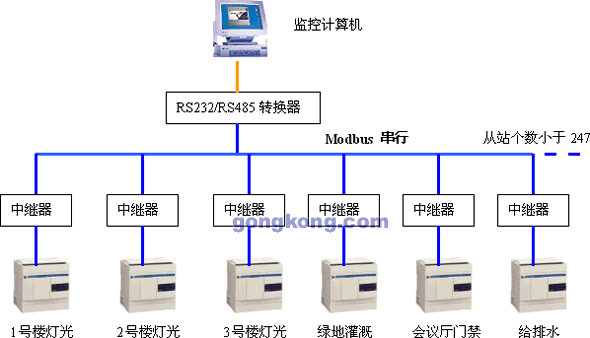 缺点:通信速率慢,监控计算机与最远一个从站距离超过200米时需要加中继