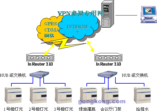 缺点:相对于方案2速度较慢,而且需要附加CDMA或者GPRS的通信费用,另外需要购买INROOTER路由器。