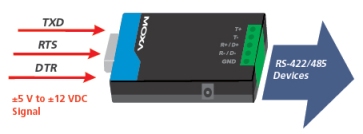 TCC-80转换器通过从RS-232端口取电来实现RS-232到 RS-422/485转换。它将RS-232的TxD和RxD信号转换为半 双工的2线RS-485或全双工的4线RS-422/485差分信号。 同时,TCC-80内建有15KV ESD浪涌保护功能,可防止输出信号的电流突波。除此之外,TCC-80还提供了通过检 测RS-232输出信号TxD状态来实现RS-485自动数据流向 控制的功能。因此,客户不必亲自控制RS-485数据的流向。