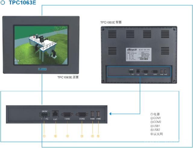 TPC1063E,是一套以嵌入式低功耗CPU为核心(主频400MHz)的高性能嵌入式一体化工控机。该产品设计采用了10.4英寸高亮度TFT液晶显示屏(分辨率640×480),四线电阻式触摸屏(分辨率1024×1024),同时还预装了微软嵌入式实时多任务操作系统(中文版)和MCGS嵌入式组态软件(运行版)。