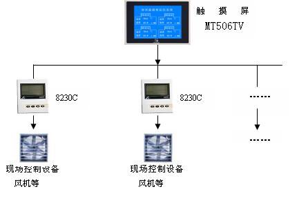 MT506T触摸屏和LTM8230C仪表通过485总线连接,可远程实时显示现场温湿度及报警状态,达到管理与控制相结合,及时发现和处理问题。