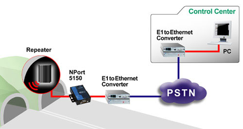 GSM/GPRS的无线通讯是当今世界上最广泛应用的系统之一。 事实上,移动电话现在已成为人们生活中必不可少的东西。随着3G技术的到来,移动通讯技术带来的不仅仅是声音,还有图像和多媒体的信息。 在工业应用上一个激动人心的消息是移动技术正进入到系统监控的领域里来。该趋势应用在许多领域中,系统供应商在努力消除电话通讯中的盲点,使电话或者信息没有被遗漏掉。基于这个需求,系统供应商一般使用信号中继站和分配器来延伸他们的服务范围。比如电梯、隧道、地铁等那些以前将电话信号屏蔽掉的地方。这些延伸的设备放置在一块大区域旁边,确保中心管理和系统的绝对稳定,Moxa的设备在此时应运而出。 Moxa的NPort设备服务器提供一个可靠数据传输线路来帮助系统供应商建立方便的管理监控系统,NPort 设备服务器连接主机和中继器,允许工程师进行设置、维护、控制系统各方面,包括天线的方向、故障报警、运行和紧急关闭。这个应用又使Moxa设备服务器能够建立一个可靠的数据通讯通道。