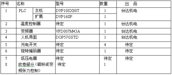 (3)电机传动。传动使用变频器带变频电机。变频器通过R485通信和可编程控制器进行连接。这样可以在人机界面上设定运行速度。考虑到薄膜放卷部分的控制可能还需要对放卷电机进行控制(放卷部分可以使用磁粉方式加张力控制)。