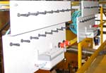 I.G.L.O.M工厂共安装了60块面板,共570个Y阀岛,95个进气模块可输出约1500个进气信号,570个阀与Y阀岛和100个电磁阀平行连接。 今天,和网络连接的带4条现场总线的PLC连接入系统,管理着整个系统。共有3台电脑,其中两台监管,另一台监督数据。而整个设备现在可以临时多运转14个设备。