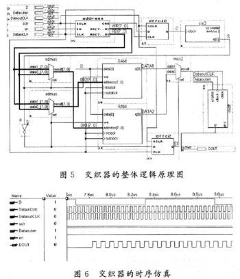 图5给出了应用Max+PlusⅡ软件实现的交织器设计的整体逻辑原理图。