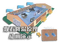 土禾水帘式风调系统:利用水帘墙降温系统,水蒸发吸热原理,负压通风原理,来排出厂房内的废气、污气及解除高温闷热。">