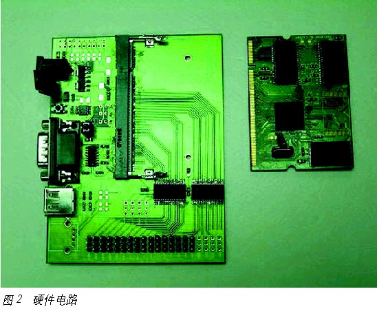 见图2,一块核心母板,配备CPU、16MB的NOR Flash、64MB的NAND Flash、32MB的SDRAM,并设置系统从NAND Flash启动;一块外设电路板,负责系统和