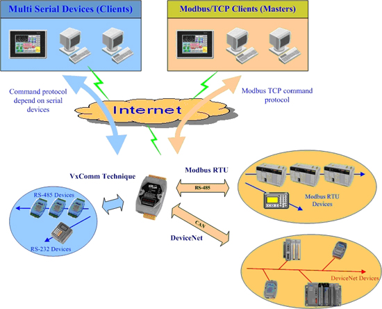 I-7243D是泓格公司在CAN BUS系列中的一项产品。不仅提供VxComm功能及Modbus协议中RTU/TCP的转换功能,也解决了Modbus TCP及DeviceNet通讯协议间的转换问题。使用I-7243D网关,无论是PLC或PC Based的系统都可以透过Internet/Ethernet来监控DeviceNet网络上的设备。在DeviceNet网络接口上,I-7243D扮演DeviceNet Master的角色,提供“Predefined Master Connection Set”的功能且支持“Group 2 only Server”的DeviceNet设备。在Ethernet网络接口上,I-7243D扮演Modbus TCP Server的角色,使用者可以使用Modbus TCP class 0、class 1及部分的class 2功能来和I-7243D相互通讯。此外,我们也提供了Utility工具软件,让使用者可以建构I-7243D的各项参数及功能,同时也可以更容易的撷取DeviceNet网络设备的数据。