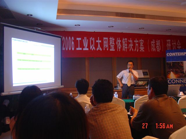 2006科动成都研讨会 6月27日,美国科动公司在成都总府皇冠假日酒店成功举办了《2006年科动工业以太网研讨会》,科动全线新款工业以太网产品伴随着醉人的春风扑面而来。 上半场的主题为科动工业以太网家族,首先由科动公司销售经理为大家介绍科动工业以太网交换机系列产品,饱含激情、专业细致的演讲抓住了现场在座各位的心,会议由此逐步推向高潮。随后科动销售人员向大家详尽阐述了科动工业以太网行业解决方案及案例,结合丰富生动的图例、妙趣横生的语言让大家深刻领会了科动工业以太网产品在四大行业中的应用。