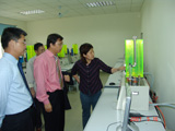 揭牌仪式结束后,郁总与学校领导一起参观了实验室。