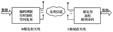 从图1可以看出,比特流在经过编码、调制和空时处理(波束成行或空时编码)后,映射成不同的信息符号,从多个天线同时发射出去;在接收端用多个天线接收,进行相应解调、解码及空时处理。