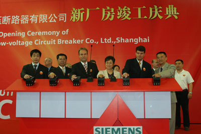 西门子(中国)有限公司自动化与驱动集团 18日隆重庆祝上海西门子低压断路器有限公司(简称SCBC)新厂房竣工。新厂房投资6000多万人民币,包括研发中心,生产基地和仓储中心,启用后将大幅提高SCBC的产能,并为今后加强研发力量奠定了硬件基础。该项投资是西门子自动化与驱动集团在中国低压配电市场上的又一重要举措,旨在进一步加强断路器领域的产品竞争力,更好的服务中国工业用户, 同时面向全球市场。