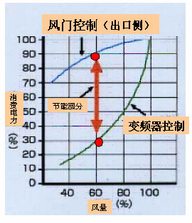 对于离心风机和水泵,采用变频器控制电机转速,替代原挡板和阀门控制,改变在挡板和阀门上消耗大量电能的情况;根据离心机工作原理,相似情况下流量、扬程和消耗功率与转速的一次、二次、三次方成正比,改变风量和流量时,降低电机转速,可节约大量电能。