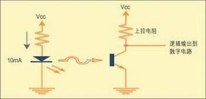 电阻值越低,抗扰度越好,运行速度更快,但并不适用于所有的光传感器。晶体管必须吸收足够的电流以确保有效的逻辑低电平。如果想使用较小的上拉电阻,可采用具有较高CTR的光传感器开关或具有更大驱动电流的LED。光传感器开关具有达林顿晶体开关输出形式,它通常具有比图1更高的CTR,但通常它们也只有单只晶体管输出速度的20%,且饱合电压较高。