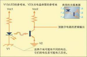 图4显示光隔离器中信号从一个电路中传递到另一个电路的过程,而且地线和系统的电源接口或许是完全分开的。即使在一条地线看似相同的单一系统中,光隔离器也可用于隔离地回路,或将地线的燥音(如脉宽调制发动机燥音)阻挡在逻辑/模拟地线之外。光隔离器输出逻辑电平,与光电晶体管的输出不同,这些光隔离器装置的IC内部有其它电路已将模拟输出转化为数字电压输出。