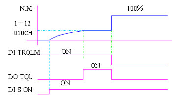由上述讨论可知,只要在开启扭矩限制功能的前提下,改变伺服内部寄存器1-12的内容值,即可限制伺服电机输出扭力的大小。