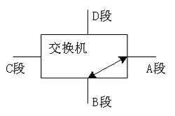 (2) 采用交换机以太网技术:由于共享式以太网工作站点争抢信道而产生冲突碰撞影响了系统的实时性和不确定性,采用交换机以太网技术可使其得到改善。交换型的以太网中采用以太网交换机,交换机各端口之间同时可以形成多个数据通道,每个端口可连一个网段,端口之间帧的输入和输出不再受CSMA/CD介质访问控制协议的约束。当系统包括多个工作群组,一般让每个组群单独组成一个网段,每个网段占用交换器(机)一个端口(如图4所示交换机有A、B、C、D四个网段),各网段的工作大部分时间是独立的,当任意两个网段需要信息交换时,交换机能在2个独立网段之间建立信息通道(例如图4的A、B),一旦信息交换结束,通道即断开。