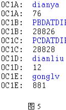 图4中nADCIn0为对电路零序电压波形的64点采样值,nADCIn1为对电路零序电流波形的64点采样值,图5中电压值76为零序电压波形的有效值,电流值12为零序电流波形的有效值,功率值881为某电路的零序有功功率。由图中可以看到各项预定计算功能都得到了实现,经计算验证仿真计算结果完全符合设计的要求。