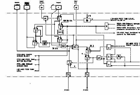 整个洗选过程的控制有压力除节机的控制、压力筛的控制、除砂器的控制以及洗浆液位的控制等,由于每个调节系统输入条件限制较多,输出也受外围的泵和阀的开停状态限制,不同的状态要求调节阀响应控制到0%或30%位置,其逻辑框图如图3所示。本工程通过利用SunySunyTDCS9200系统的算法编辑器(SunyIEC)的成功实现了对各系统的控制,图4是盘磨板调系统具体实现的算法程序图。