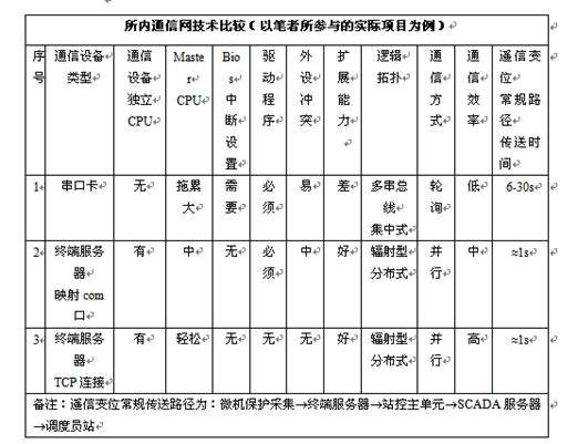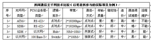 从上表中可以看出:方案1或方案2使用通信系统提供的串口,方案3采用的是IP over SDH,方案4是真正的城域以太网技术,通信系统仅提供传输介质。