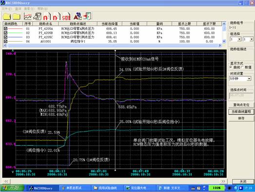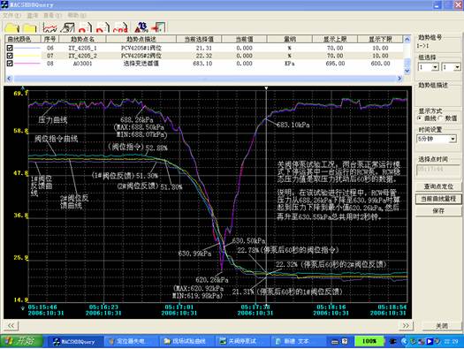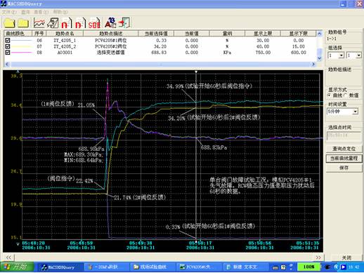 通过趋势画面还可以监视到三个压力变送器对应压力、阀位指令信号值和阀位反馈信号的趋势变化情况。