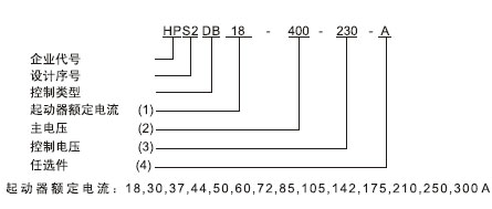 (1)起动器额定流 18,30,37,44,50,60,72,85,105,142,175,210,250,300 370,470A (2)主电压