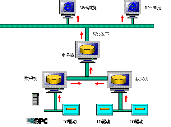 其中,服务器端安装了紫金桥实时数据库,主要负责数据的汇总、发布和转储;数采机安装了紫金桥组态软件,主要负责数据的采集和传送给服务器端。