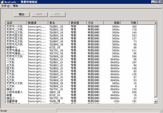 在“数据转储组态”中设置数据源、表名称、表类型、方向、周期等信息。
