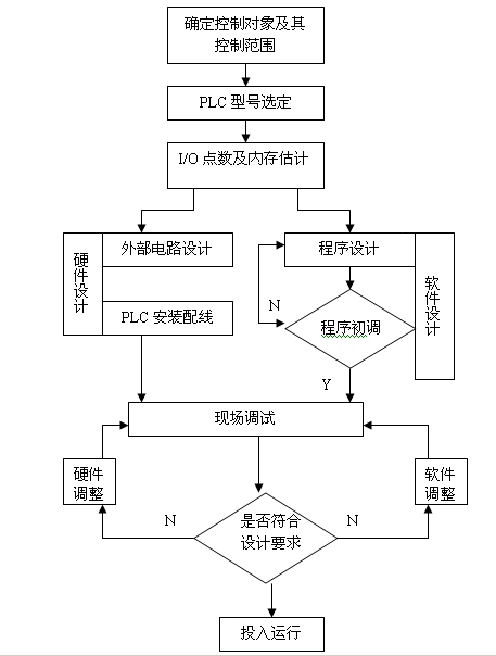 PLC的工作方式和通用微机不完全一样,因此用PLC设计自动控制系统与微机的控制系统的开发过程也不完全一样。需要根据PLC的特点,以程序形式来体现其控制功能。设计可按照下图中几个步骤进行。