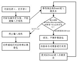 Window的最大特征之一是设备无关性,使得Window程序员不用对硬件直接进行操作。利用Window的SDK提供完备的API函数和以中断方式驱动的通信程序,可以更加简化串口通信编程。而且Window系统是抢先式的多任务操作系统,使得应用程序能够同时执行多个任务,即在一个进程中可以同时运行多个线程,系统可以不停的在多个线程之间切换。所以在串行通讯程序中应用多线程就可以简化应用程序的结构,把一些复杂的运算放在后台并行执行,从而大大提高应用程序的响应实时能力。