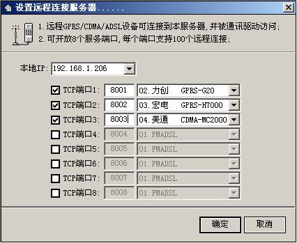 C、远程连接服务最多可开放8个端口,分别对应某种数据终端设备,每个端口允许100个数据终端设备进行连接,远程连接服务对所连接的设备进行在线管理;