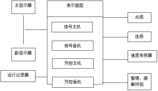 列车速度监控系统由信号主、备机,列控主、备机,主、副显示器,列车运行记录器,信号感应器,速度传感器,警惕按钮和缓解按钮等组成,系统结构框图如图1所示。