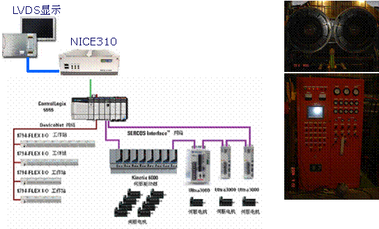 本系统由工业液晶显示屏,无风扇设计嵌入式系统NICE 3100,控制器,工作站,驱动器,伺服器等组成。