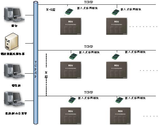 随着酒店规模的不断扩大和服务层次的提高,酒店业务量和复杂程度的逐渐加大,对酒店管理的要求也越来越高。由此,基于网络的客房智能管理系统便应运而生。网络型客房信息与控制系统集智能灯光控制、空调控制、服务控制与管理功能于一体,具有智能化、网络化、规范化特点,将科学的管理思想与先进的管理手段的相结合,帮助酒店各级管理人员和服务人员对酒店运行过程中产生的大量动态的、复杂的数据和信息进行及时准确的分析处理,从而使酒店管理真正由经验管理进入到科学管理。采用成熟的以太网TCP/IP通信协议,保证了整个系统的稳定性和可靠性,克服了目前国内其它公司普遍采用的上一代酒店客房控制系统RS-485总线联网方法速度慢、可靠性较差以及多种网络布线复杂、重复建设等各种问题。 一个完整的酒店客房信息与控制系统由以下三部分构成: 1、单客房系统(以RCU为核心构成,可独立运行); 2、通讯系统(客房、楼层、中心三级通讯,通过RS485总线或TCP/IP以太网构成); 3、系统软件(运行于C/S结构的网络系统)。